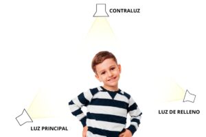 Los tres elementos que lo componen son los siguientes: luz principal o key light, luz de relleno o fill light y contraluz o backlight.